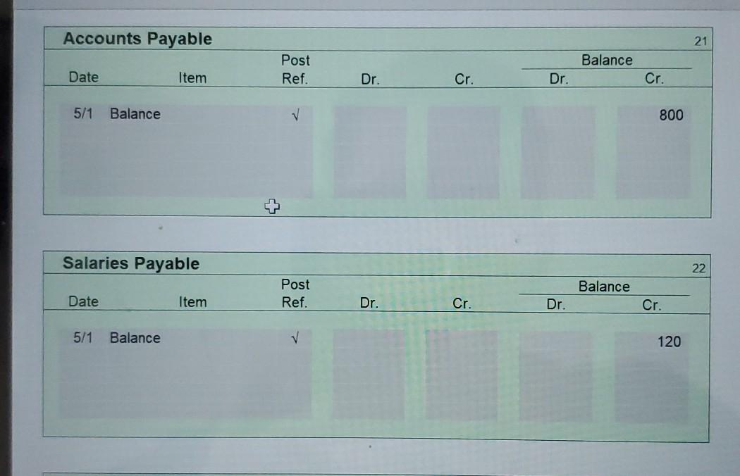 Journalize each of the May transactions in the two. Post the adjusting entries to the T accounts. Using the attached spreadsheet journalize the transactions for May the last month of the fiscal year below.